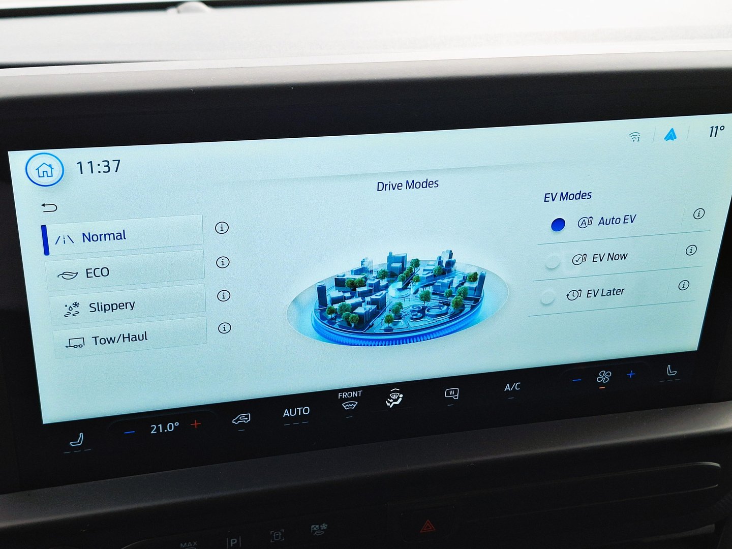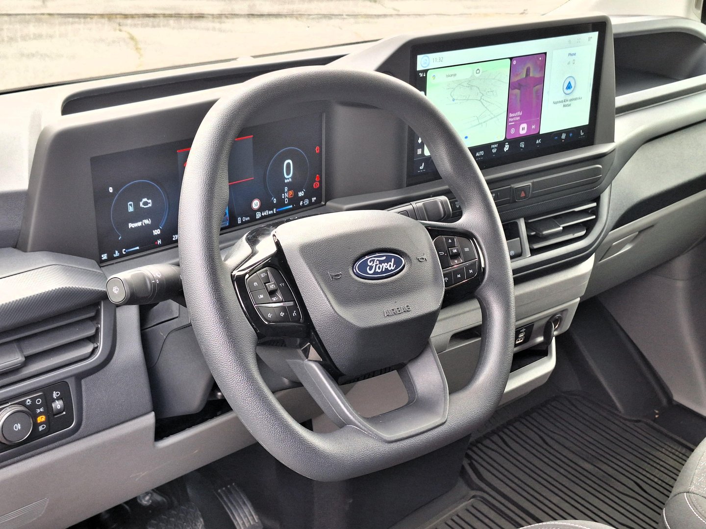 Tudi notranjost je že znana, zagotavlja solidno udobje in kar precej prostora za shranjevanje, čeprav vsi prostori in predali niso povsem uporabni. No, uporaben del opreme je nedvomno digitalno vzvratno ogledalo, povezano z vzvratno kamero, z ustrezno spominsko kartico je lahko ogledalo uporabno tudi kot kamera na armaturni plošči. Volanski obroč v E-Transitu Custom je skoraj kvadraten, kar omogoča enostaven ogled digitalnega prikaza instrumentov. Asistenčni sistemi so prikazani na 13-palčnem zaslon na dotik. Mednje spadata Fordov najnovejši komunikacijski sistem in številni pomočniki, med njimi tudi za optimalno polnjenje baterije.