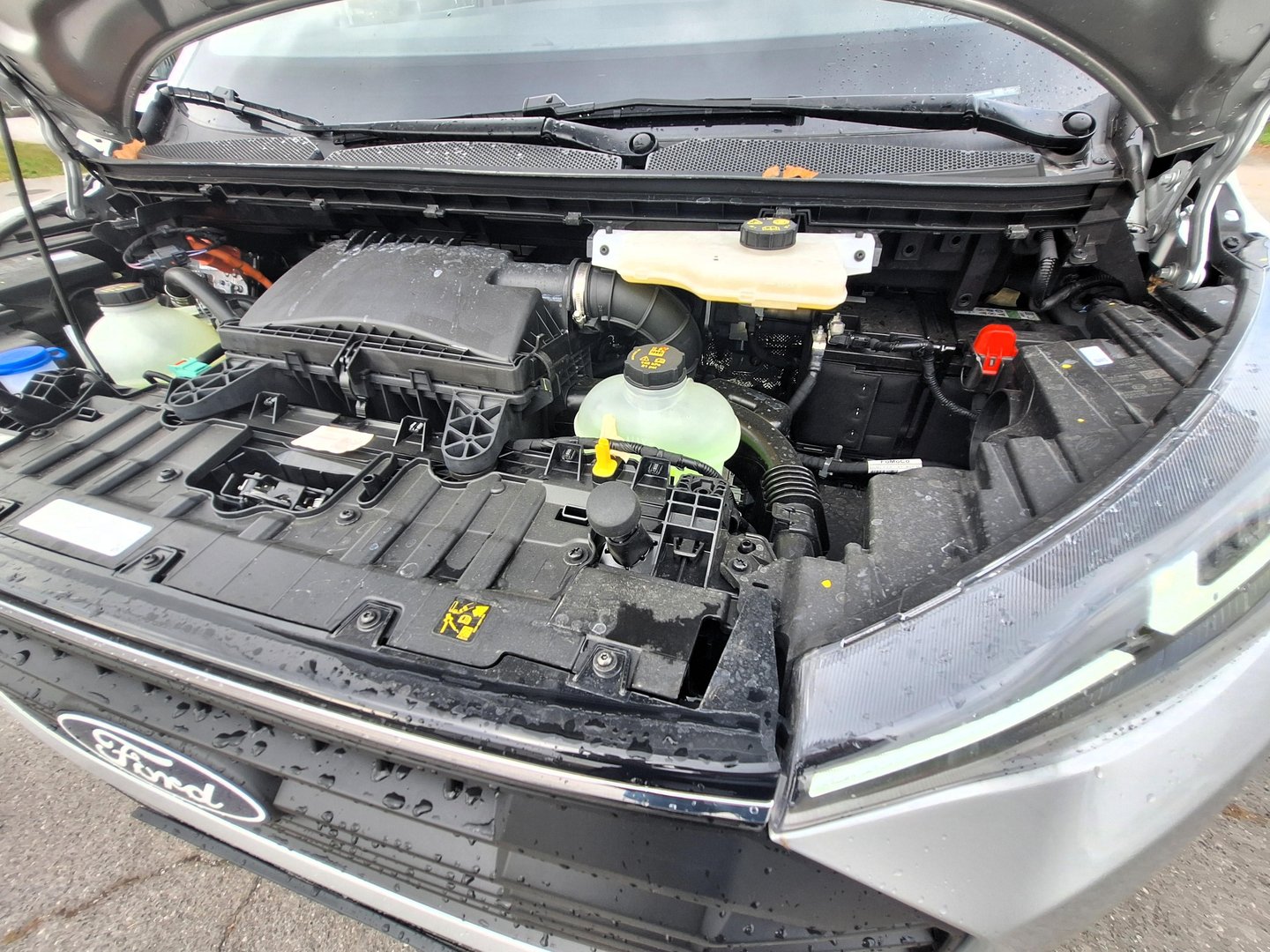 Transit Custom ni popolnoma električno vozilo, ima pa električni del hibridnega pogonskega sklopa pomembno dvojno vlogo, hkrati skrbi za nižjo porabo goriva in za zmanjšanje škodljivih izpuhov. Priključno hibridni pogonski sklop je zelo podoben kot v športnem terencu Kuga, torej ga sestavljata sinhroni elektromotor s 97 kilovati in 2,5-litrski štirivaljni bencinski motor s 112 kW kilovati. Sistemska moč je nato 171 kW (232 KM), kar je dovolj za vozno suverenost tudi pri polno otovorjenem vozilu.