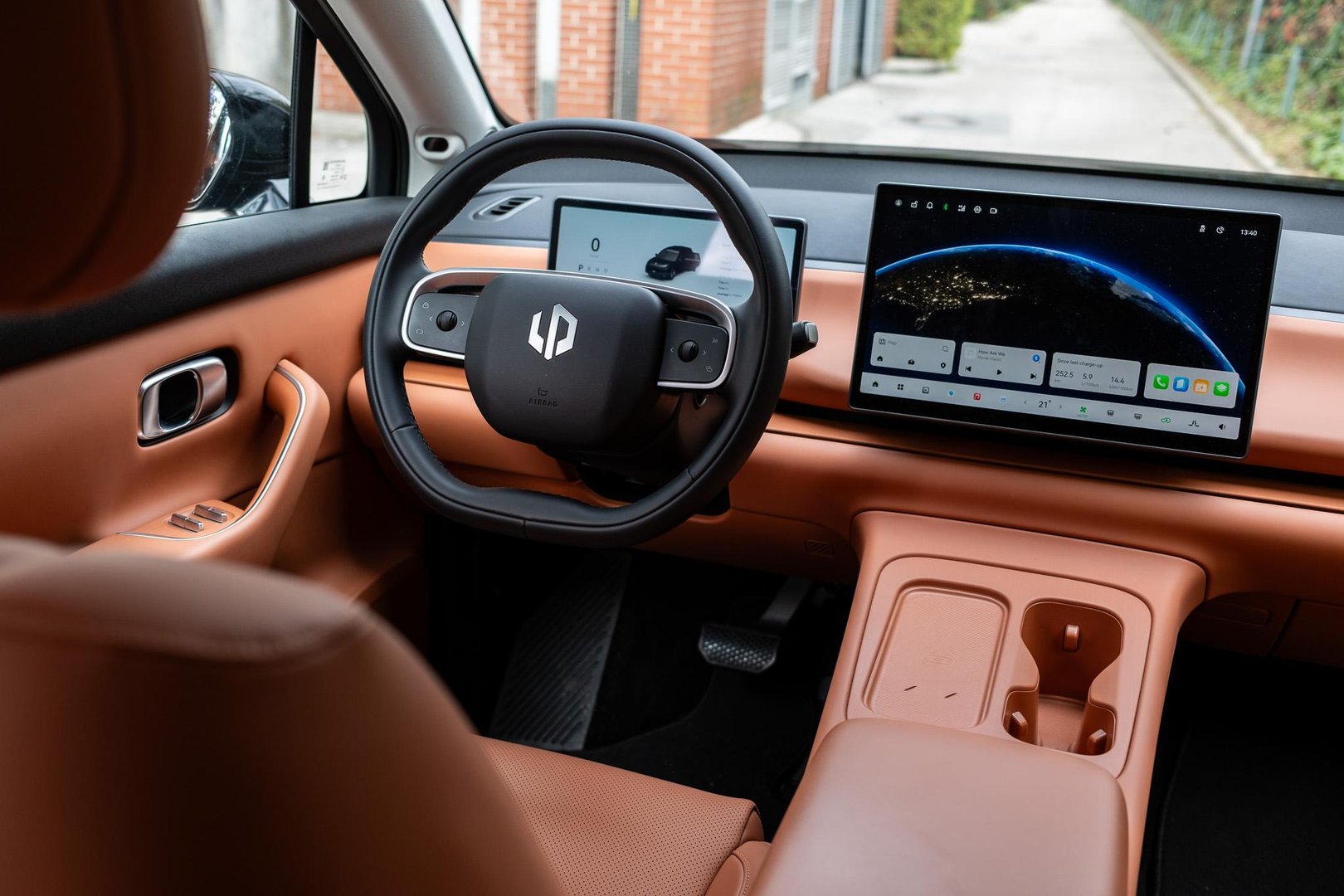 Verjamem, da ste na fotografijah hitro opazili tudi barvo notranjosti. A brez skrbi, na voljo je še ena, precej bolj umirjena možnost. Zasnova armaturne plošče gre sicer povsem vštric s Teslo in nekaterimi drugimi kitajskimi znamkami. Torej izrazito minimalistična notranjost brez stikal, izkušnja pa je povsem odvisna od uporabniškega vmesnika na velikem osrednjem zaslonu, ki meri 14,7 palcev.