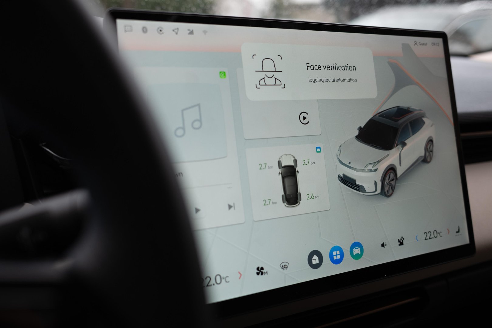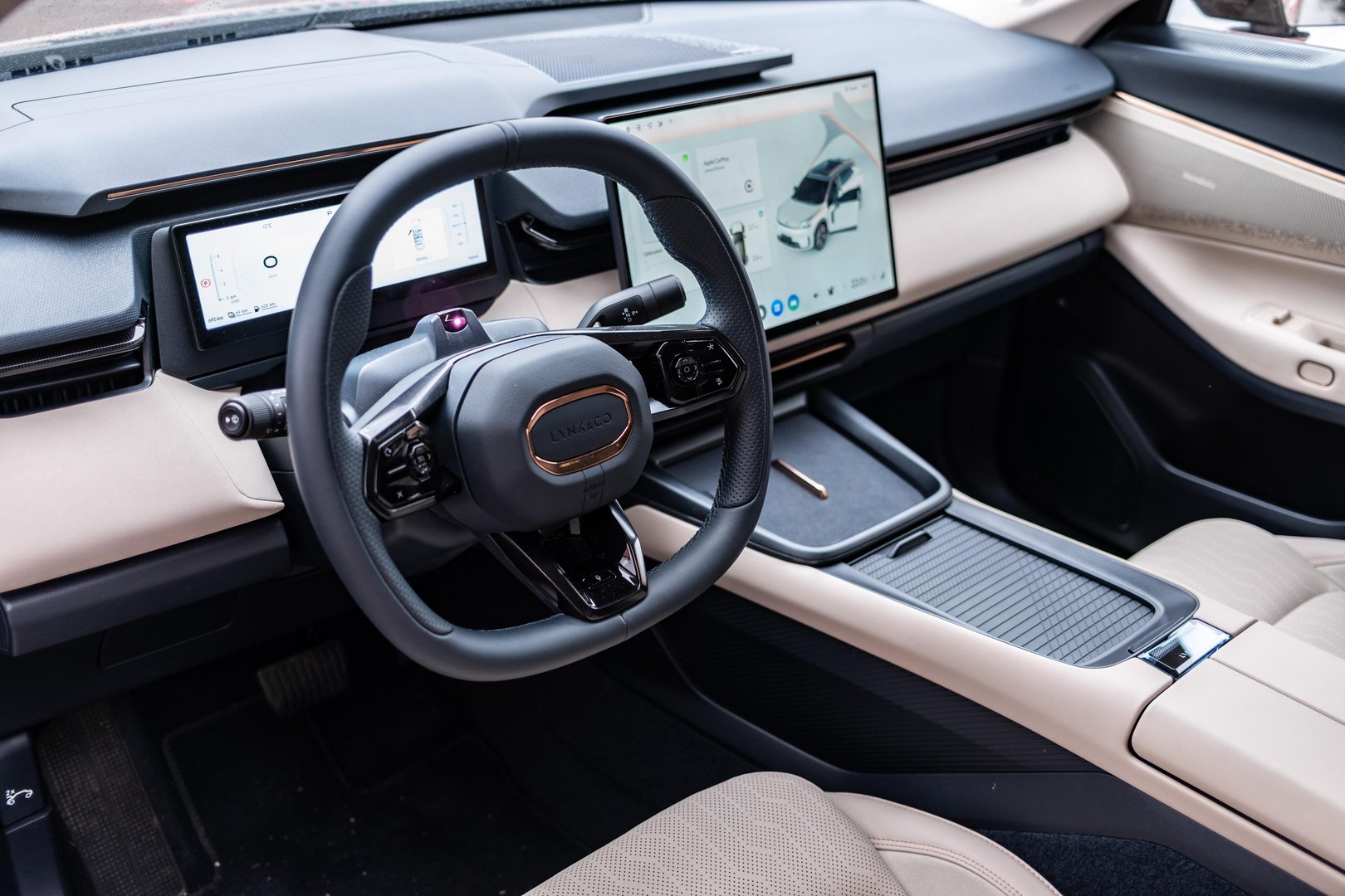 ... in konkretnem zvoku zapiranja vrat, ki po kupejevskem vzoru nimajo okvirjev. Diši po Volvu, ki je sicer vendarle bolj konservativen. Postavitev je sicer trendovska (no ja, sedaj bi rekel temu že kar konformistična), stikala so le na volanu in na vratih, z manjšim voznikovim zaslonom in večjim osrednjim zaslonom velikosti 15,4 palcev.