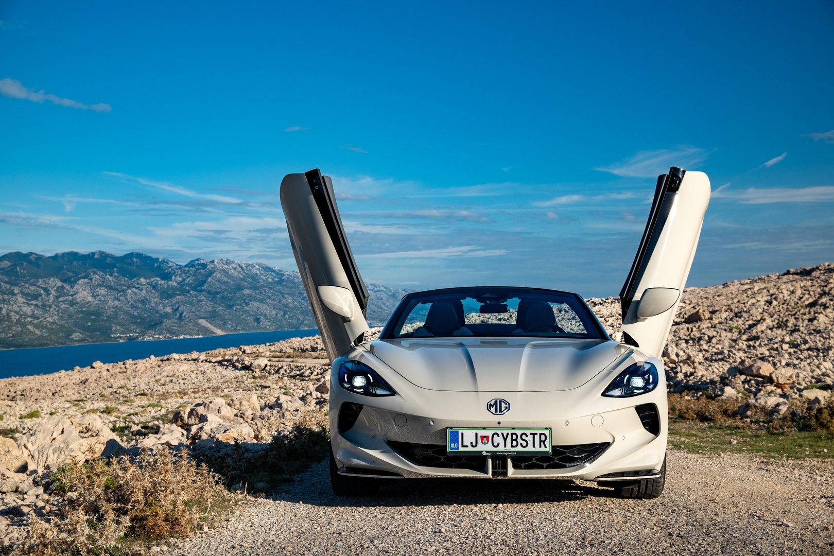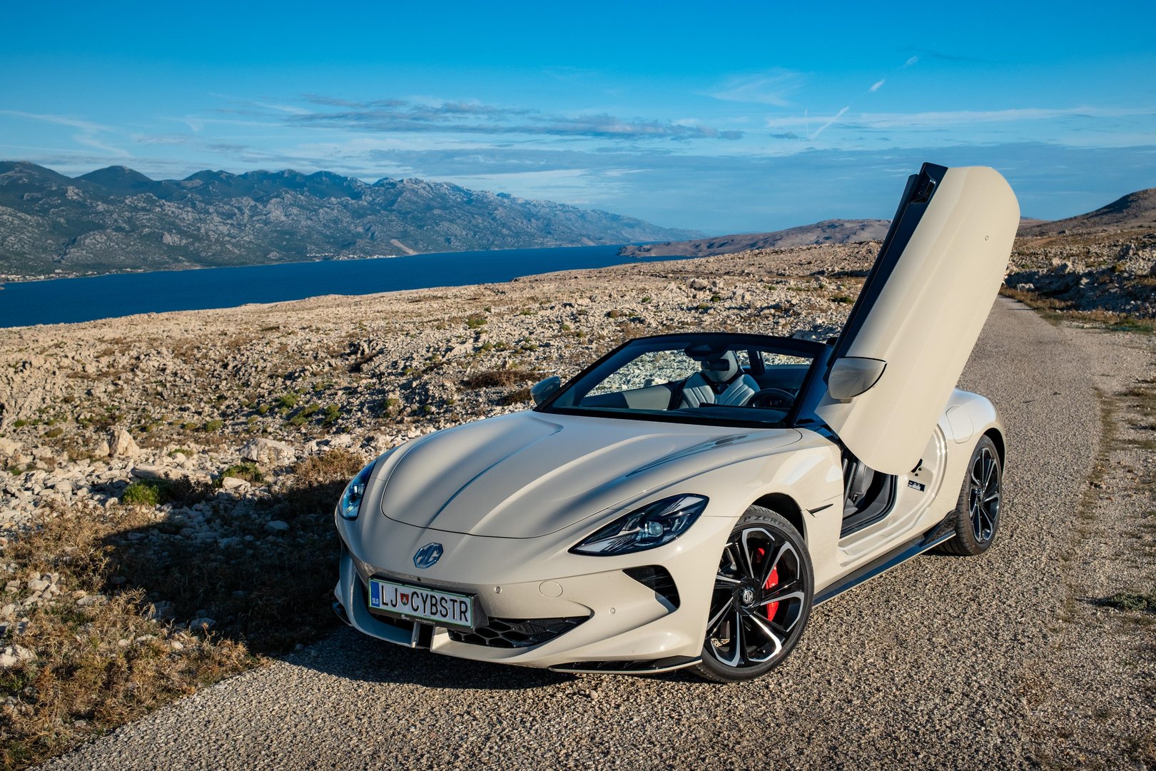 Sedim namreč v MG Cybersterju, s katerim imam na voljo sicer le nekaj dni. Zato sem v torbo po hitrem postopku nametal par majic, napolnil baterijo in se iz prestolnice prebil skozi primorski prometni lijak. Takšen avto seveda moram preizkusiti v dopustniškem okolju. Po najljubših cestah, ki peljejo v oddih.
