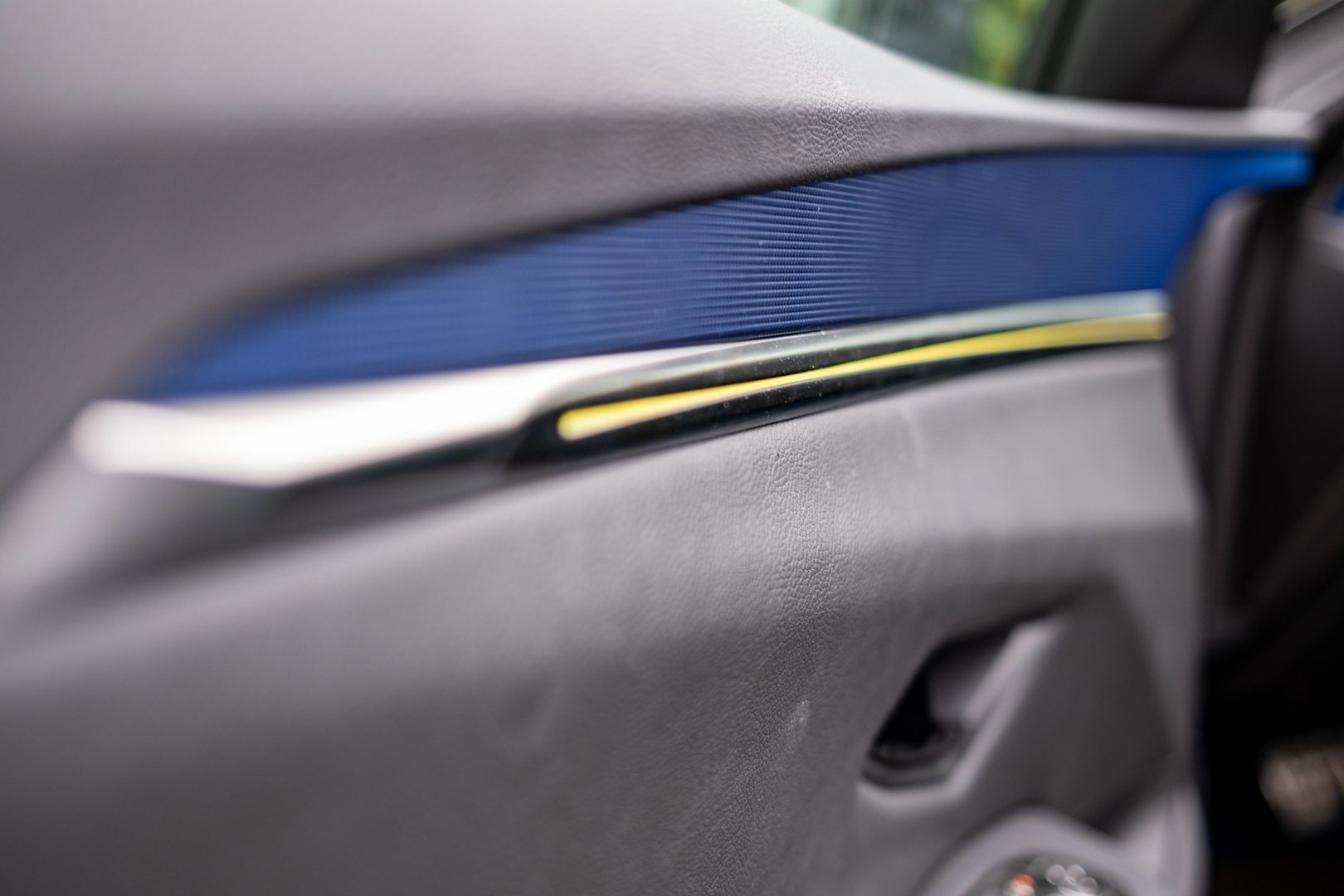 Esprit Alpine? Na ceniku gre za srednji paket opreme. Megane vsaj po mojem mnenju z monolitno obliko sicer nima najboljših oblikovnih predispozicij za kakšne agresivne karoserijske dodatke, in nova 20-palčna platišča so še najočitnejša novost. Podobno je v notranjosti, sedeža s črnim tekstilom, Alpinovimi logotipi, francosko trobojnico in modrimi šivi nekaj športnega duha vendarle prinesejo.