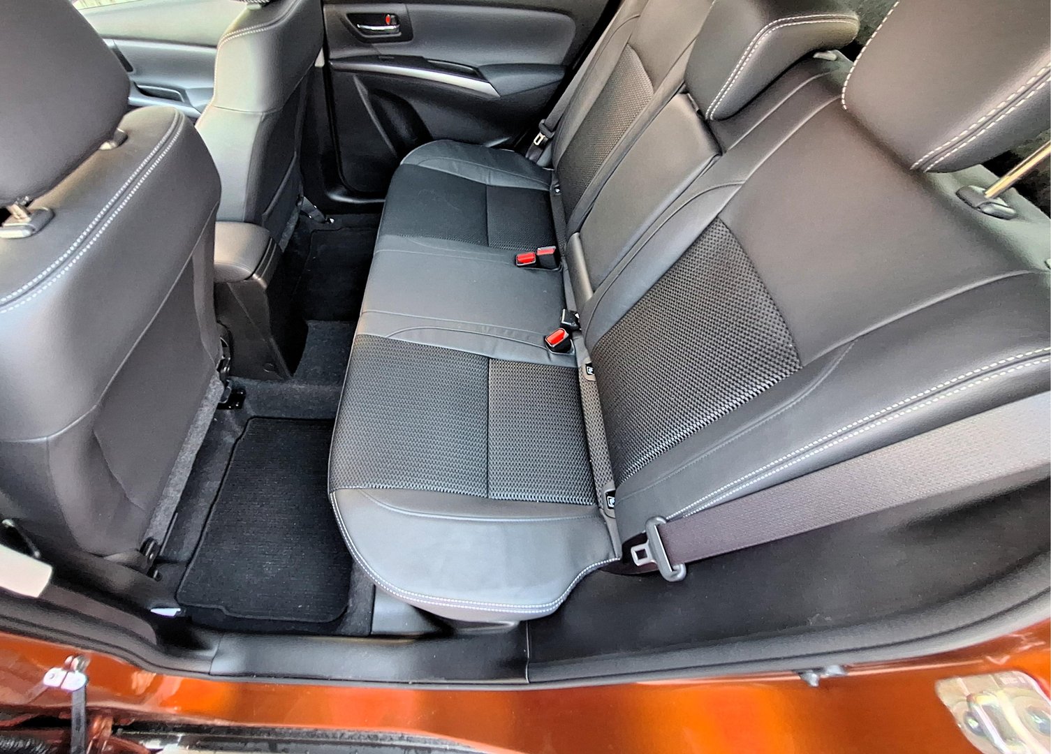 Zadaj je udobje nekoliko omejeno z zunanjimi merami, medtem ko je prtljažnik z osnovnimi 430 litri prostornine zadovoljiv, enako velja za 1.260 litrov s podrto zadnjo klopjo. Glede udobja je S-Cross civiliziran in vzmetenje ponuja razmeroma mehkobno požiranje cestnih grbin.