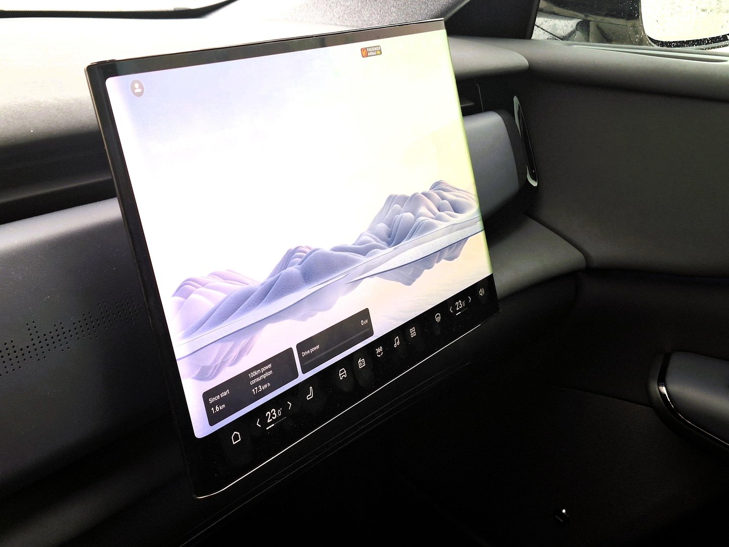 To je opazno v kakovosti končne obdelave, izbranih materialih in arhitekturi potniške kabine. Armaturna plošča je vsaj na prvi pogled videti elegantna, digitalno moderna in urejena. V oči bodeta velik osrednji komunikacijski zaslon in zajetna sredinska konzola prezračevalne odprtine so brez kičastih poudarkov, zaman pa oči iščejo zvočnike. Zato pa se že po enem dotiku preveč dobro vidijo prstni odtisi na vseh gladkih površinah.