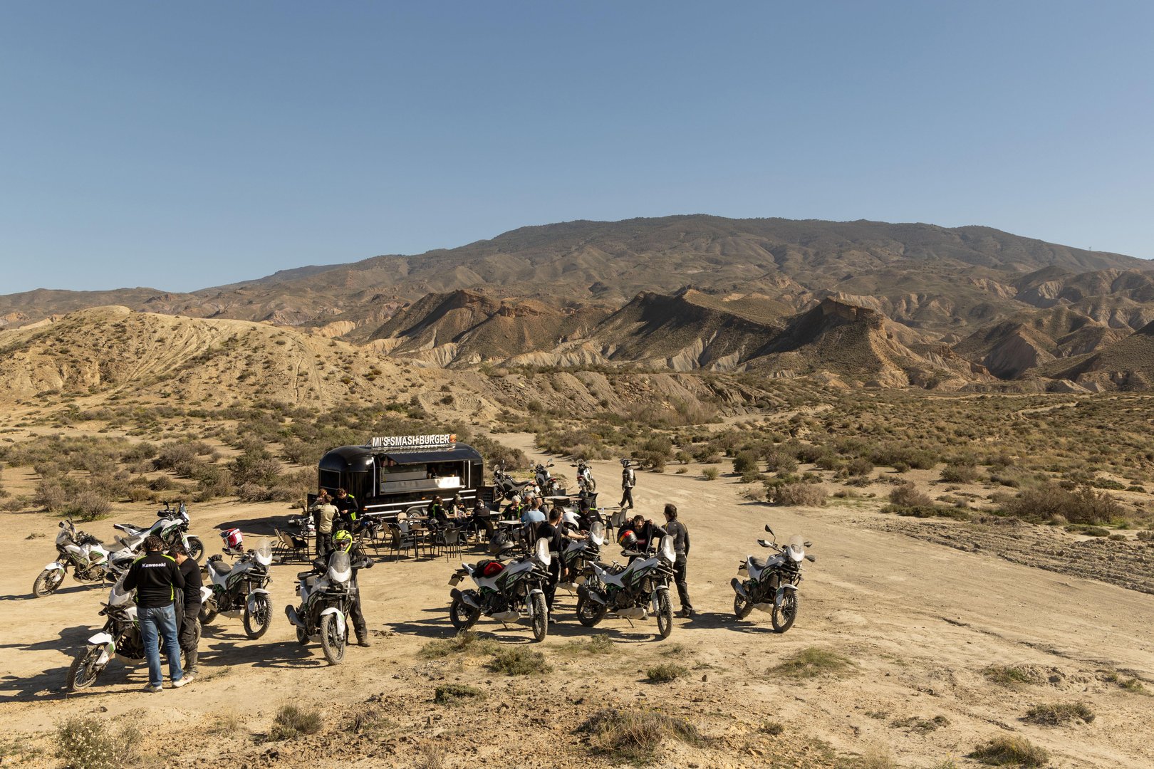 Almeria (Španija) - po španskih gorskih cestah, ki obkrožajo puščavo Tabernas, smo se izbrani novinarji zabavali na svetovni premieri novega Kawasakija KLE 500. In ker so Kawasakijevi možje vztrajali pri tem, da je novi KLE 500 resnični adventure motocikel in ne samo mestni fant s terensko šminko, se nas je kolona štirinajstih motoristov s KLE-ji spustila tudi v osrčje edine vroče in najbolj suhe evropske puščave.