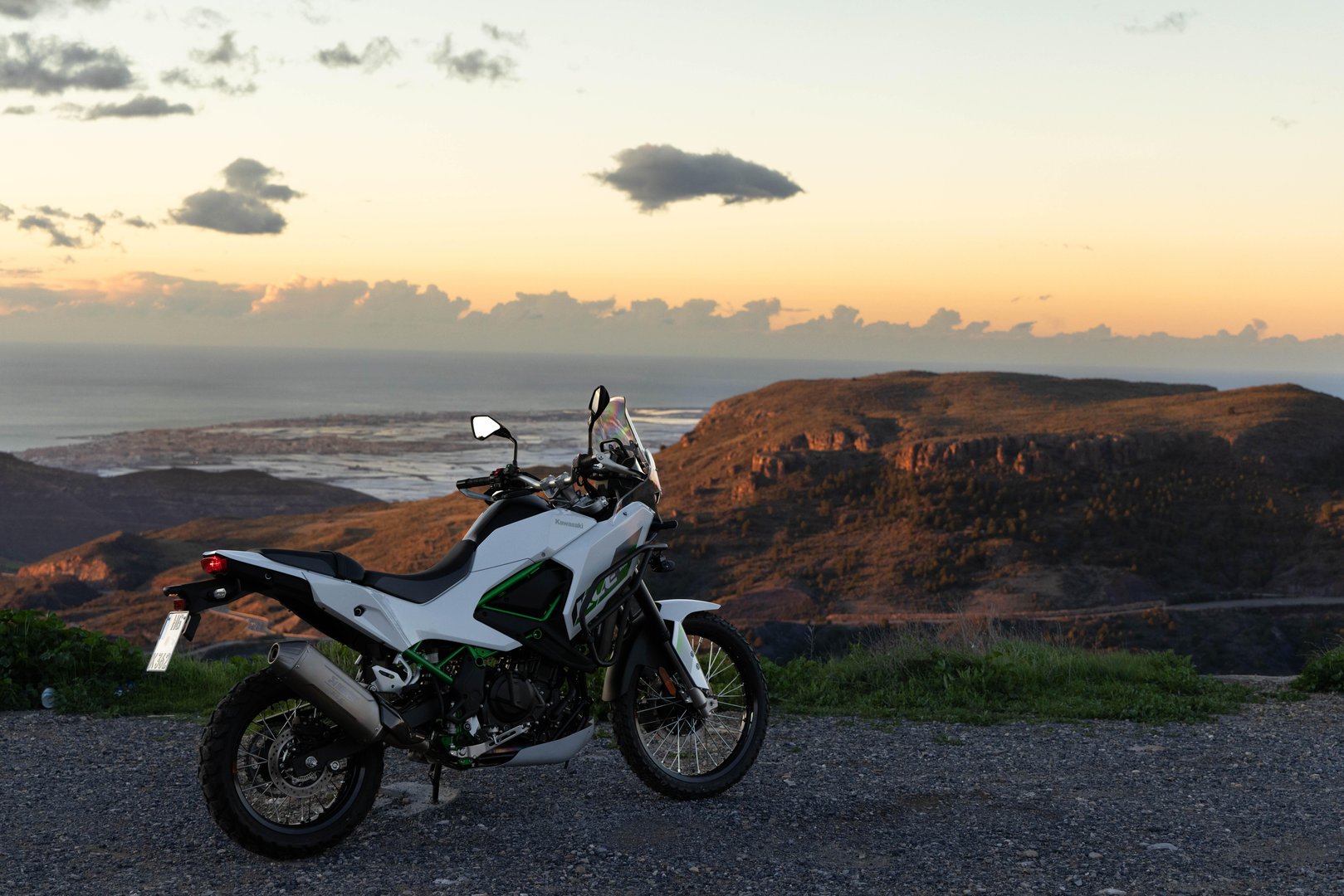 Govoriti o tem, da prodajaš adventure motocikel, v resnici pa so njegove osnovne specifikacije vse prej kot takšne, je na zahodni fronti zelo tvegano početje. Za razliko od nekaterih daljnovzhodnih proizvajalcev, ki prepljavljajo tudi naš trg, se pri Kawasakiju tega zelo dobro zavedajo. Zato so poskrbeli za 185-mm odmika od tal, za relativno dolge hode vzmetenja (210-mm spredaj, 196-mm zadaj), za terensko zmogljive pnevmatike IRC, kolesa z žičnatimi naperami, rezervoar s 16-litri prostornine in normiranim dosegom 400 kilometrov, ter še tudi za teren sprejemljivih 195 kilogramov mokre mase.