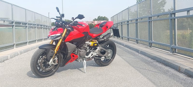 Nekaj je o vožnji s slečenim motociklom potrebno vedeti. Ni za vsakogar, ni za vedno in ni za vsako cestno površino. A prav to se zgodi enemu izmed naju. Namreč; prekrasna, a zaprta in razrita cesta slovenskega zaledja, tam med Polhovim Gradcem in Rovtami. Ovinki so kratki, odsekani, pogosto s slabim asfaltom. BMW se upira kot neposlušen žrebec. Prva kratka, druga predolga. Motorne mape niso v neko pomoč, a ko se cesta umiri, občina pa položi lepši asfalt, stroj zaživi. Tudi ob agresivnem odpiranju plina je BMW sicer oster, a vedno kontroliran in predvidljiv. V njegovem sedlu si znava mirno predstavljati nežnejši spol, ali pa manj izkušenega motorista, ki se hoče seznaniti z neprekosljivimi užitki vožnje brez kakršnekoli vetrne zaščite. Ducati po drugi strani ne jemlje ujetnikov. Res, da V2 ni brutalen kot V4 z istim imenom, a če ne drugega, se v spalno naselje po 22 uri z njim ni priporočljivo pripeljati. Da bi kar 190 palčna zadnja pnevmatika kaj prispevala k vodljivosti bi težko zatrdila, a položaj za širokim in ravnim krmilom zahteva več vozniške pozornosti, kot pri BMW-ju. Spet govorimo o mogoči izbiri različnih map s katerimi je mogoče agregat, kot tudi asistenčne sisteme prilagajati posameznemu vozniku in voznim razmeram, a Italijan zahteva trdo roko. Seveda ne bova primerjala hitrosti, kotov nagiba in podobnih motociklističnih bizarnosti, vendar lahko zapiševa precej suvereno... Če vam bo na posebej zahrbtnem delu cestišča BMW vozniško napako odpustil, vam je Ducati ne bo. Tudi elektronika, pa naj bo še tako napredna, ni vsemogočna. Dela pa čudeže.