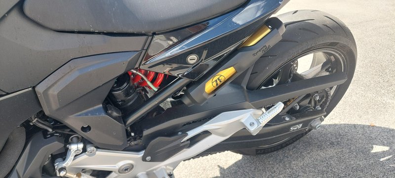 vzmetenje | spredaj 43 mm USD Marzocchi, zadaj dvojna alu nihajka, Ohlins monoamortizer, popolnoma nastavljivo | spredaj 43 mm USD vilica, zadaj zadaj dvojna alu nihajka, monoamortizer, Dynamic ESA |