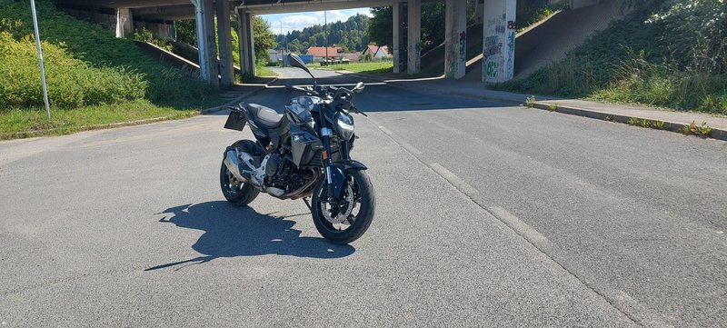 Stil je v tem razredu kralj. Oziroma kraljica. Testni BMW je stavil na črno. Sicer je dobavljiv v treh barvnih različicah, a kot bi pri uvozniku vedeli za najin nagajiv načrt, so nama zaupali povsem črnega. »Triple black,« kar se bere kot kakšen s čokolado dodatno obložen sladoled, ampak črna je resnično strmela iz vseh delov motocikla. Oziroma trije odtenki črne, v kolikor to ni samo po sebi pleonazem. Bavarci stavijo na ostre, odsekane linije; motocikel je na pogled kompakten, čeprav je medosje povsem običajno. (večje kot pri Ducatiju) Najbrž plastičnimi nosilec zadnjih smernikov in registrske tablice, ki sega daleč v prostor pripomore h kompaktni podobi, zato pa je zadnje kolo čisto: rešeno vse pritiklin, saj je tudi izpuh na desni strani motocikla koketno kratek. Za roadster se spodobi, da je brez vsake vetrne zaščite in rilček z lučjo, na katerega je nameščena ekran je potlačen, kot pri buldogu.