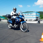 Praktični del sestavljajo vaje na poligonu, vožnja v mestnem okolju, relacijska ter vožnja po avtocesti. Vožnja po poligonu pomeni začetek praktičnega usposabljanja kandidata ter vsebuje osnovno tehnično poznavanje vozila, hojo ob levem boku motocikla, vajo spelji in ustavi, počasno vožnjo naravnost s hitrostjo pešca, slalom s hitrostjo pešca ter hitrostjo najmanj 30 km/h, osmico in zaviranje v sili (pri hitrosti 50 km/h je treba v suhih razmerah na poligonu zaustaviti v 12 in 10 metrih). Če je asfalt na poligonu moker ali hladen, hitrost ostaja enaka, le ocenjevalec poveča dovoljeno zavorno pot.