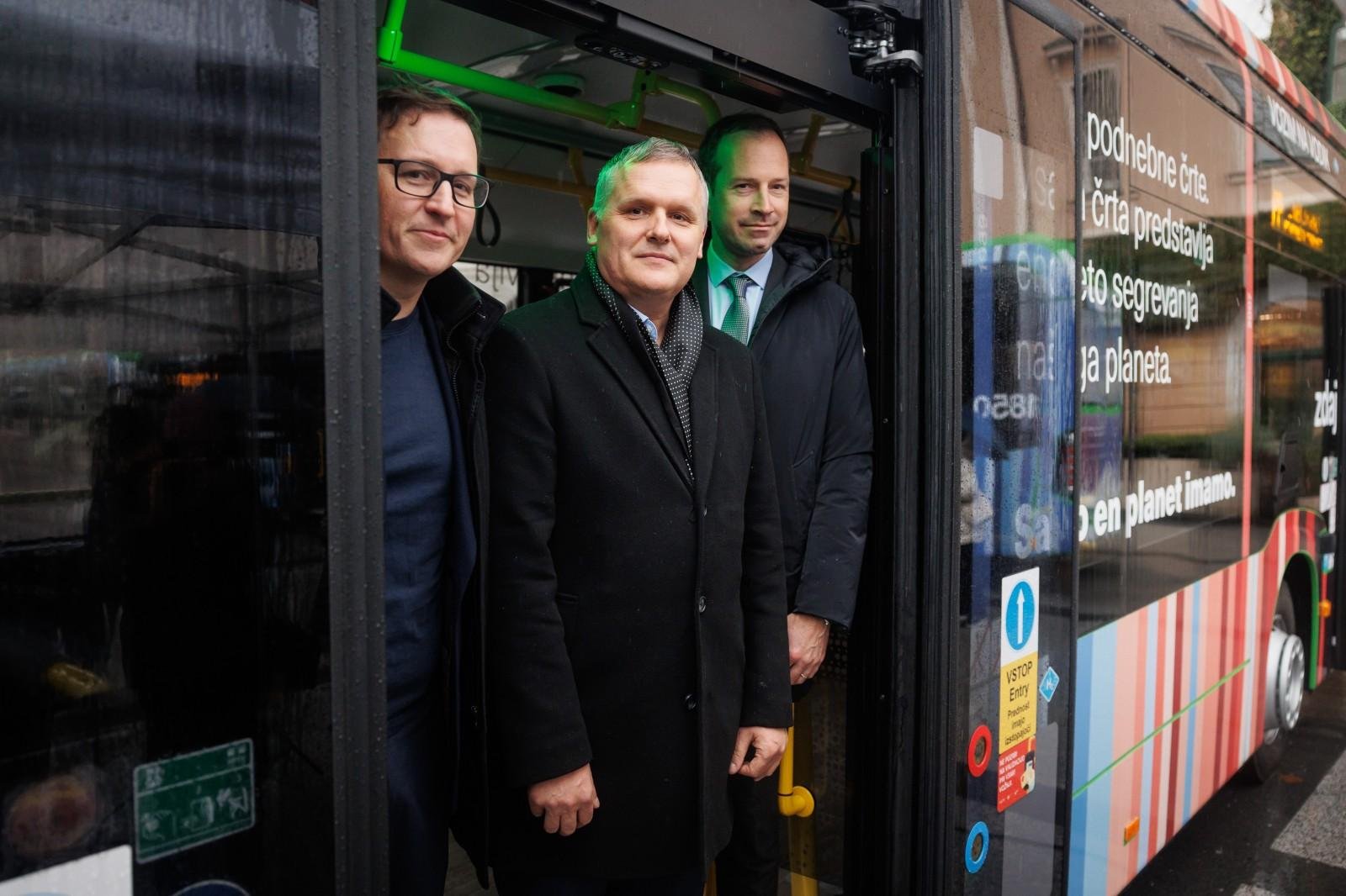 Trije avtobusi, ki so jih predstavili danes, imajo tudi vpadljivo podobo. Pobarvani so s podnebnimi črtami, ki po Kumrovih pojasnilih kažejo, kaj se dogaja z našim planetom oziroma s podnebjem. Črte brez številk in grafov jasno pokažejo trend segrevanja in delujejo kot orodje javnega ozaveščanja.