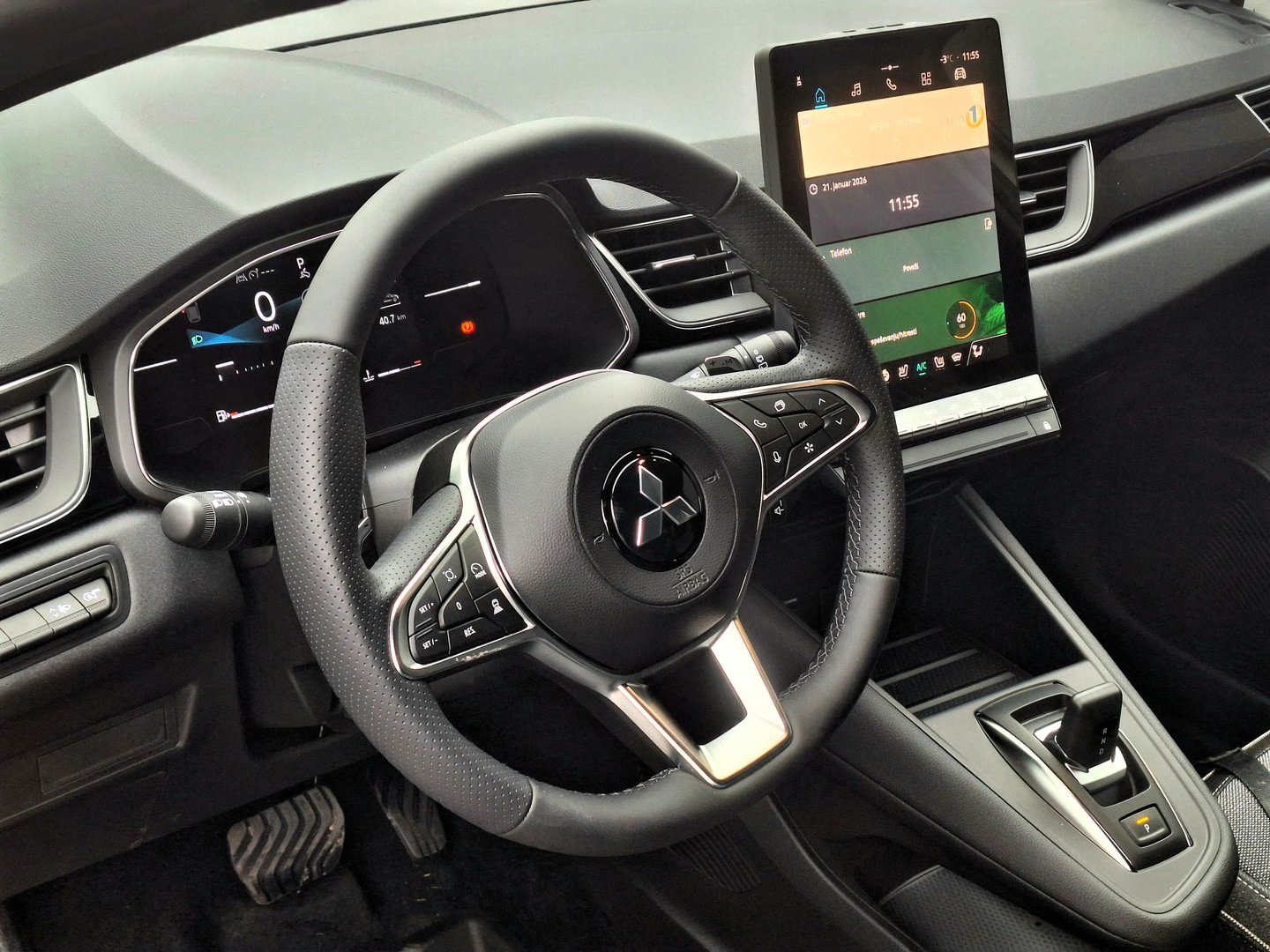 Kajti že ob vstopu v potniško kabino je razen Mitsubishijevega diamanta na sredici volanskega obroča, vse podrejeno arhitekturi, ki je v Renaultovem Symbiozu. Torej, na sredini armaturne plošče je navpično usmerjen 10,4-palčni komunikacijski zaslon in levo od njega digitalna instrumentna plošča za volanom. Sistem temelji na platformi Google in omogoča spletno navigacijo, glasovno upravljanje in dostop do aplikacij.