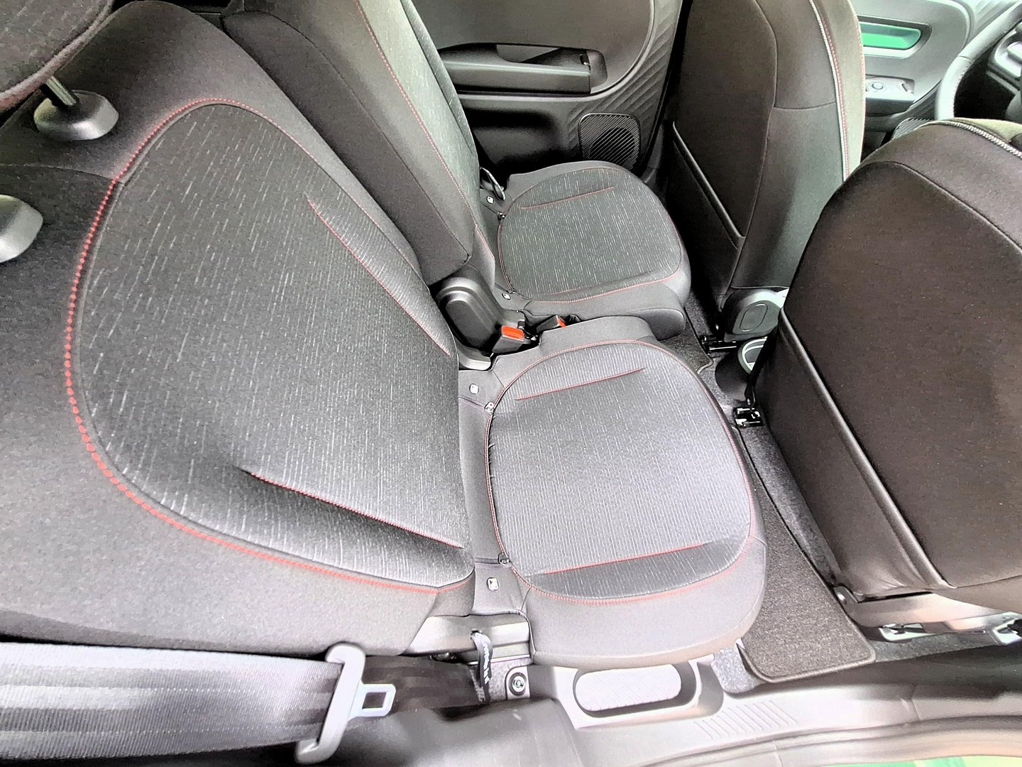Twingo je dolg 3,75 metra in ponuja prostor za do štiri potnike. Za majhen avtomobil sprednji del ponuja udobne centimetre prostora za noge, medtem ko je v zadnjem delu prostora seveda bistveno manj. Sprednja sedeža je mogoče pomikati do 17 centimetrov po dolžini. Zložljiv sovoznikov sedež ustvari tudi prostor za dolge predmete in zagotavlja dodatno vsestranskost. Tudi prostornina prtljažnika je razmeroma velika, od osnovnih 360 do 960 litrov pri zloženih zadnji klopi, v prtljažni »kleti« je tudi prostor za hrambo polnilnih kablov.
