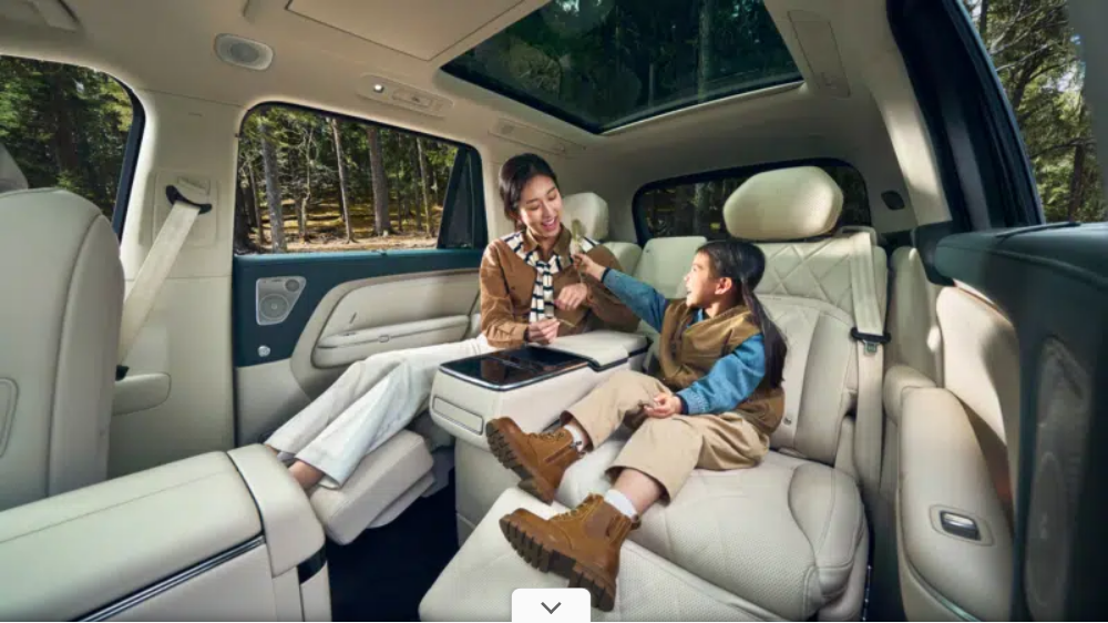 V notranjosti avtomobila je pet sedežev, v sredinski konzoli sta dva 15,6-palčna zaslona. Pred voznikom je LCD instrumentna plošča, prestavna ročica je za volanom, posebnost v potniški kabini je vgrajen hladilnik. Potniki na zadnjih sedežih imajo na voljo zaslon, nameščen na stropu, vsak sedež pa ima funkcije ogrevanja, prezračevanja in masaže.