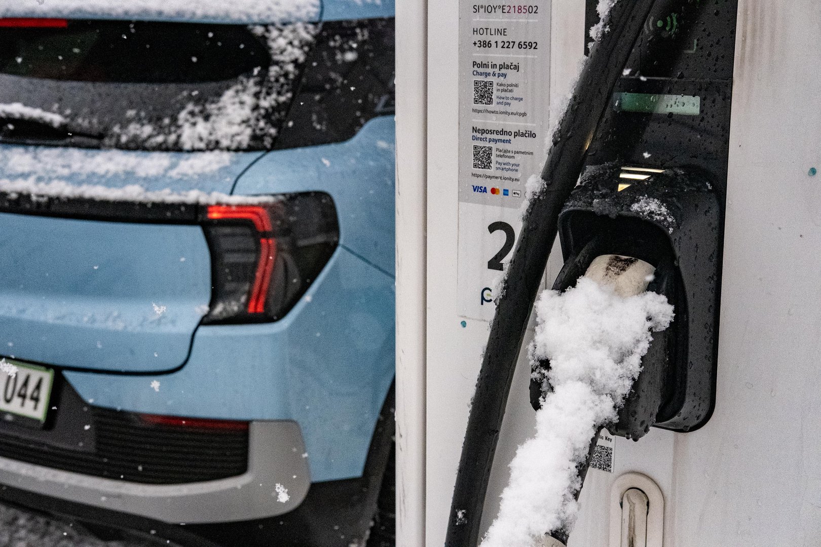 Zazvoni telefon, družba iz Celja se je zataknila v koloni pri Domžalah. Zunaj namreč krepko sneži in na cestah že nastaja kaos. Zato se odpeljem naprej do Lienza, kjer imamo že tradicionalno vedno prvi postanek za kavo. V aplikaciji sem včeraj našel hitro polnilnico na parkirišču ob centru, ki bi mi teoretično baterijo do devetdesetih odstotkov morala napolniti ob espressu. Polnilnico preverim spet tik pred Lienzom in šment - ni je več na zemljevidu. Najdem jo po spominu, a ne kaže znakov življenja. Moj načrt je hitro splaval po vodi.