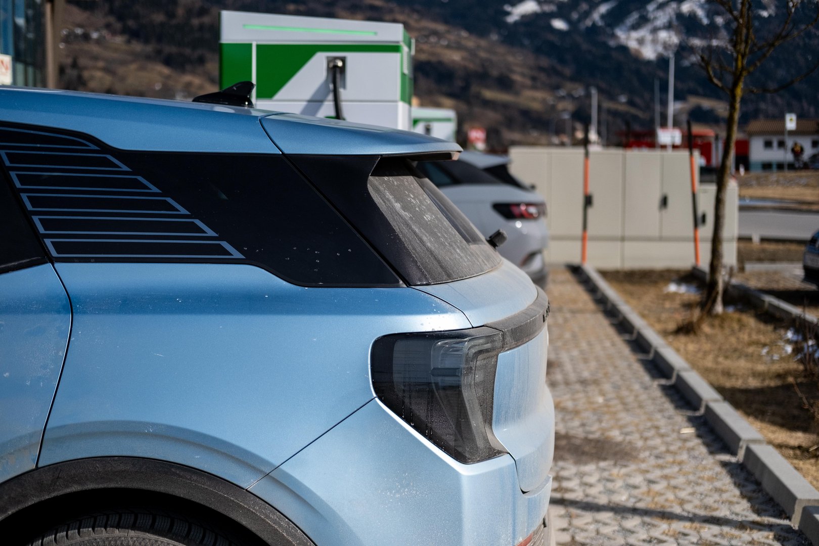 Tja se odpravim čez nekaj dni. Na polnilnici se napajata dve razvojni muli v obliki BMW-jev iX, ki sta bila že pri 90 odstotkih. A so ju hoteli napolniti do 100 odstotkov, zato na priključek čakam kakšnih 20 minut. Nato priklopim Explorerja in moč polnjenja se kmalu povzpne na 80 kilovatov. Baterija še ni povsem ogreta, pa vseeno dovolj hitro, da grem lahko le na kratek sprehod.